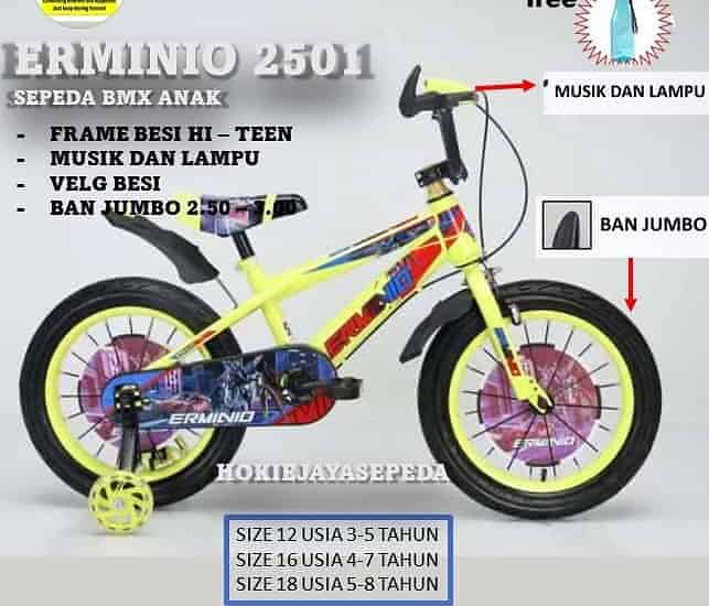 Sepeda Anak BMX 18″ ERMINIO 2509 MUSIC DAN LAMPU BAN POMPA BONUS botol air Anak usia 5-8 tahun