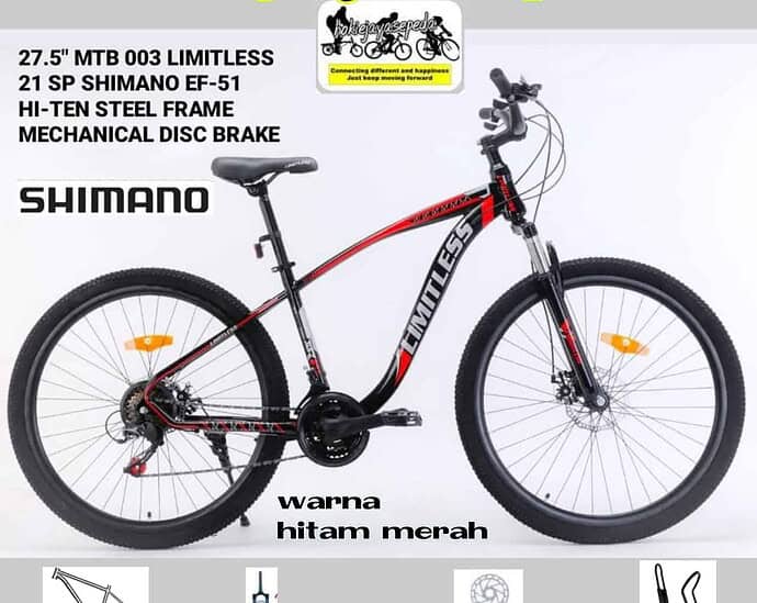Sepeda Gunung 27,5 MTB 003 LIMITLESS 21 Speed SHIMANO rem Disc Brake mechanical Free Bottle Holder
