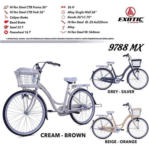 FRAME bahan steel dengan single crank dan variassi kranjang dan boncengan sangat cocok di pakai untuk aktivitas olahraga maupun aktivitas sehari hari seperti kepasar atau jemput anak sekolah dengan bobot maksimal bisa diatas 100kg