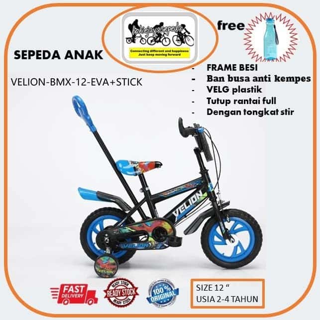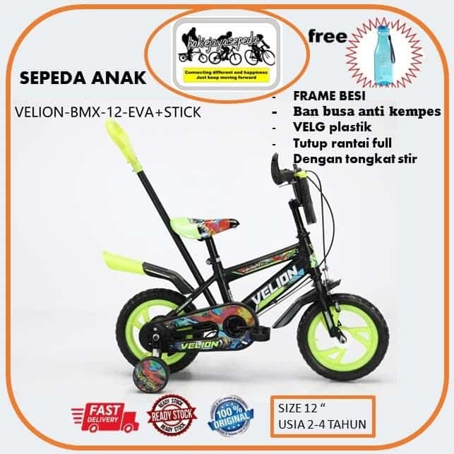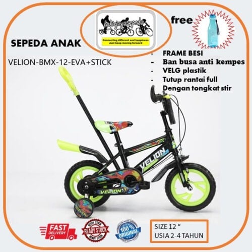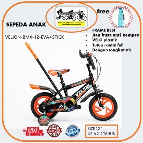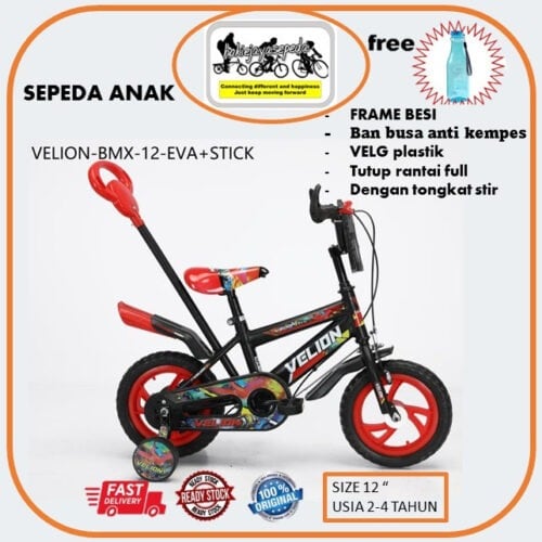 Sepeda anak BMX 12″ VELION ban busa EVA Fitur Tongkat stir (anak usia 2 tahun – 4 tahun) BONUS botol air