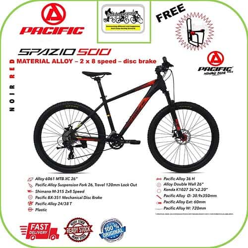 📢Sepeda Gunung Pacific 27,5 SPAZIO 500 Material alloy – 2 x 8 speed – Disc brake Free kaki botol